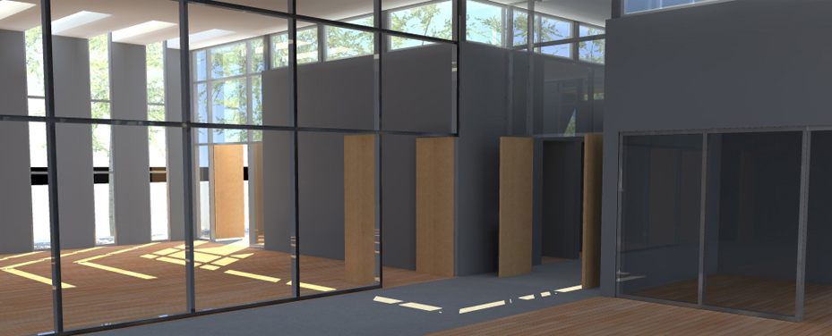 Internado de estructura de acero y tabiques, Salas, Dormitorios y Salones Comunes.
